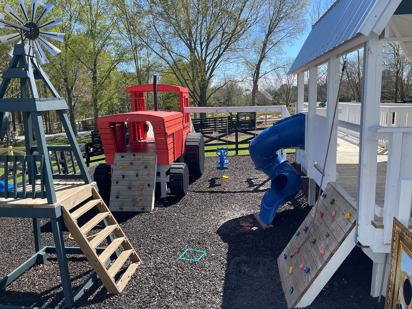 Designed from the ground up with an altogether original construction, the Rolling Hill Farm Playground accrues the most popular exterior play space ideas and incorporates them into a massive five structure, 48x55+ package. Specifically intended for farms, churches and family friendly businesses, this farm themed outdoor activity center is both wheelchair accessible and expansive in scope, providing all children a great outlet for engaging fun and play.