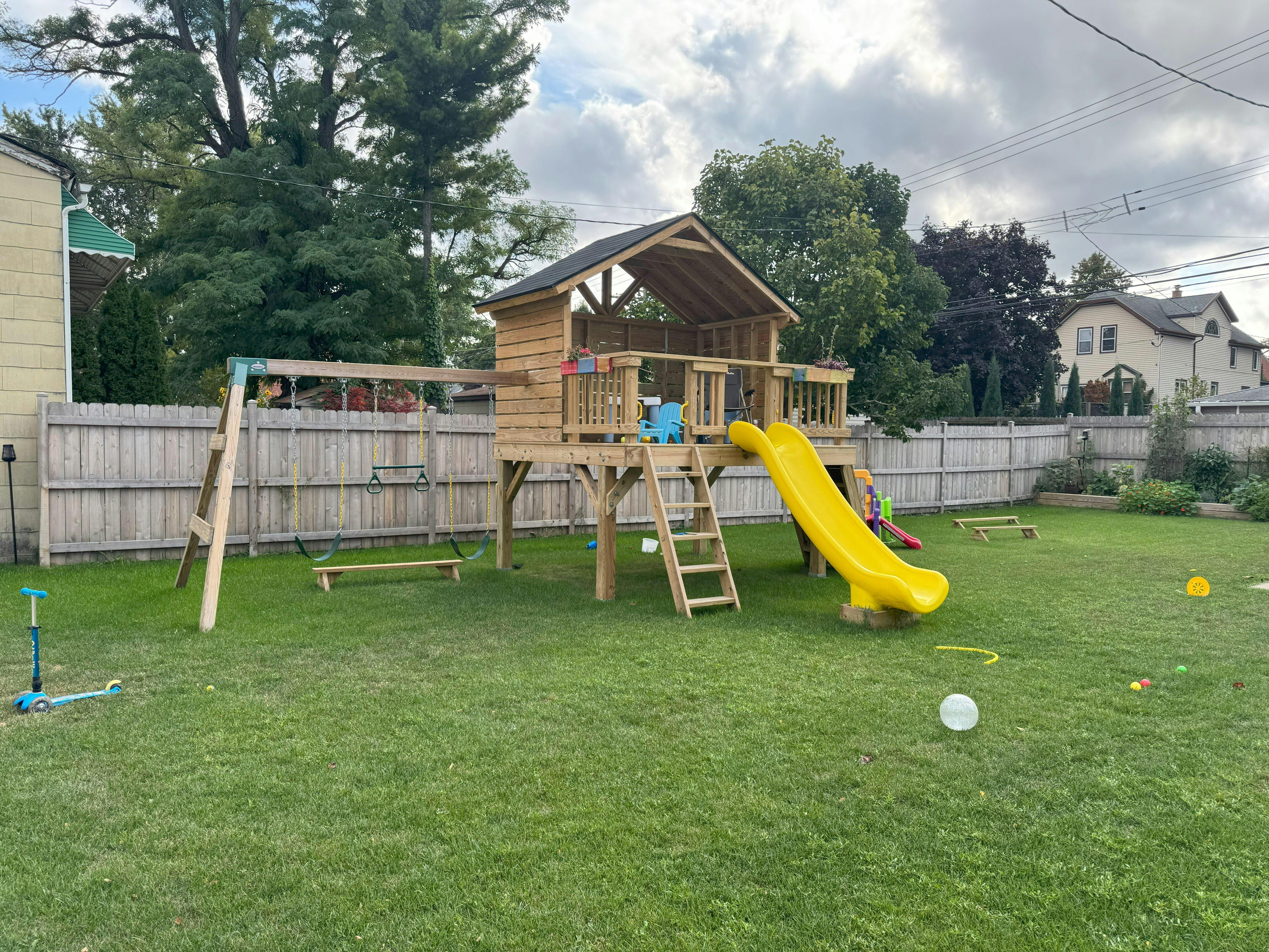 Every version includes an attached swing set for extra entertainment and active play. With swaying swings, climbing access, and an airy interior layout, the Petite Retreat encourages balance, imagination, and endless role playing scenarios. The open layout means minimal built-in detail, so children can bring the space to life with their own stories, props, and make believe. It’s a joyful, adaptable playground favorite that blends simplicity with magical possibilities.