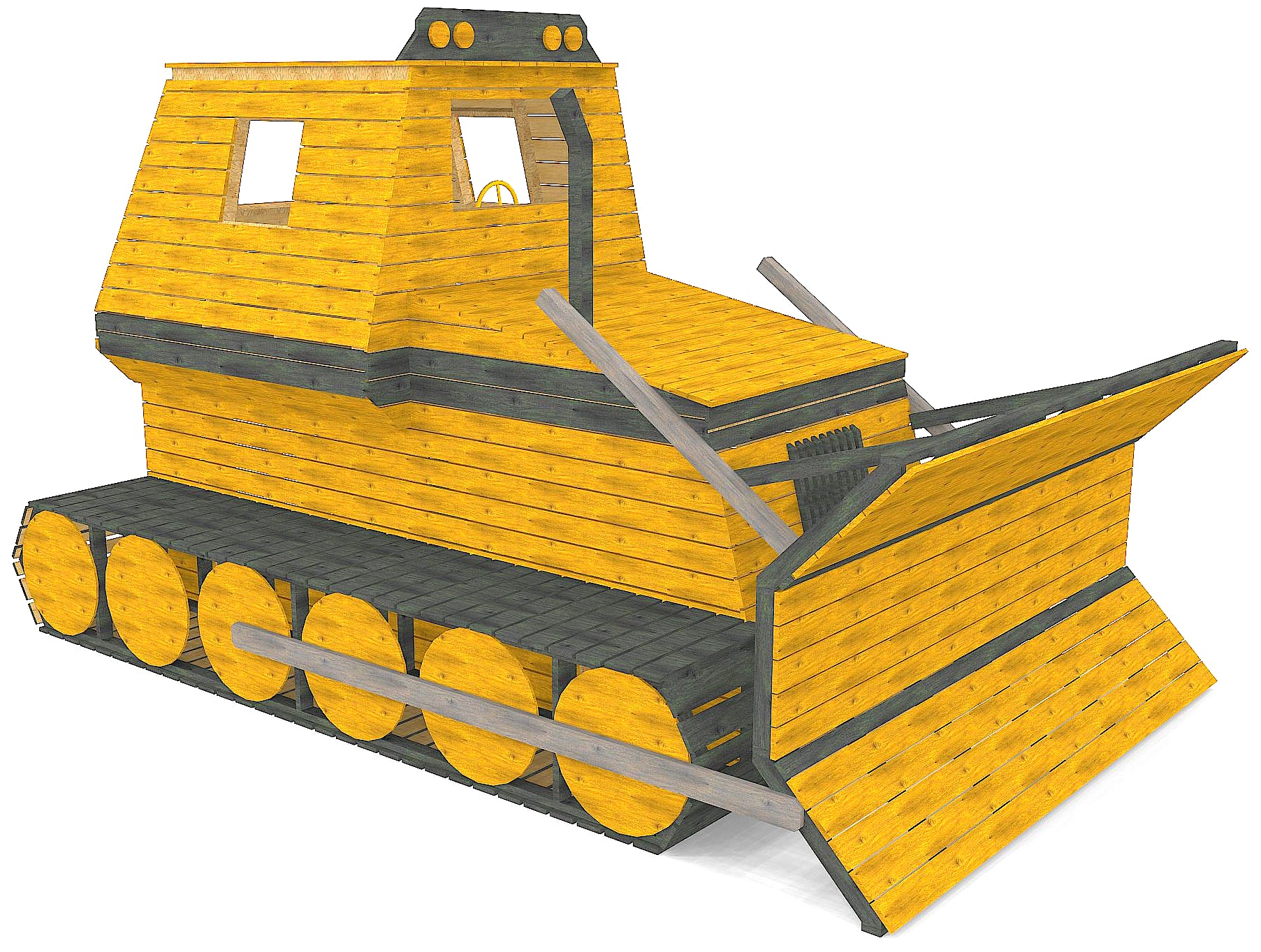 Get ready to dig into fun with the Big & Burly Bulldozer Playset Plan, a backyard construction marvel that’s built to last and designed for play. Measuring a hefty 20 feet long, 12 feet wide, and 11 feet tall, this two-story wooden bulldozer offers 250 square feet of imaginative space. Complete with a massive front blade, detailed treads you can crawl through, and a trap door for secret exits, it's a dream come true for young builders and adventurers. Whether you're pushing dirt or just pushing imagination, this playset is sure to be the cornerstone of outdoor fun.