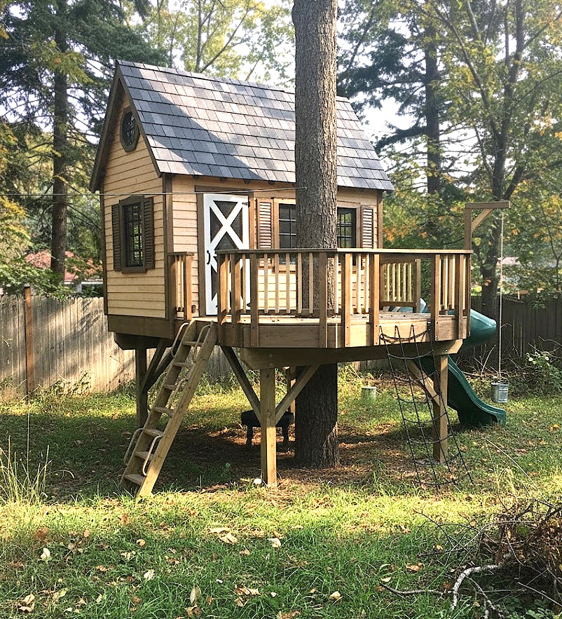 - Classic playhouse on stilts design with a 7' deck height and 290ft² of usable play space