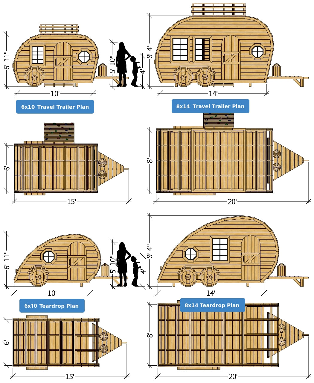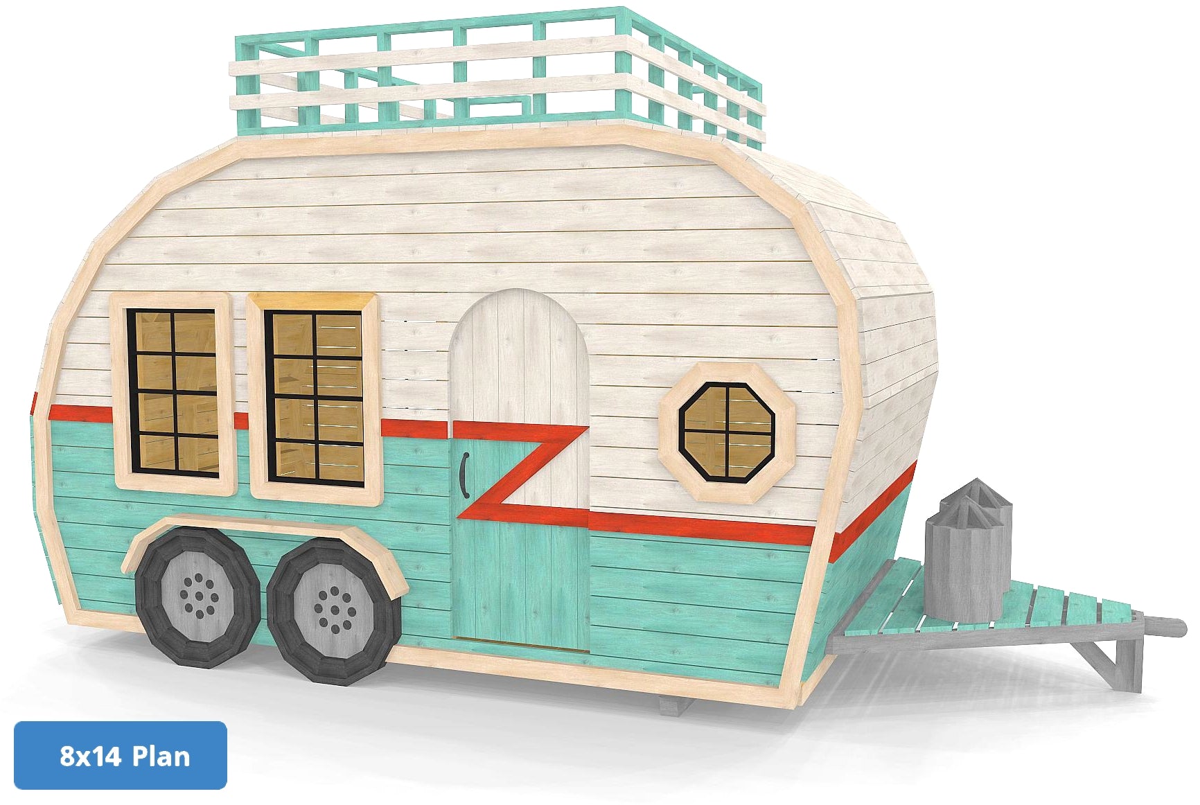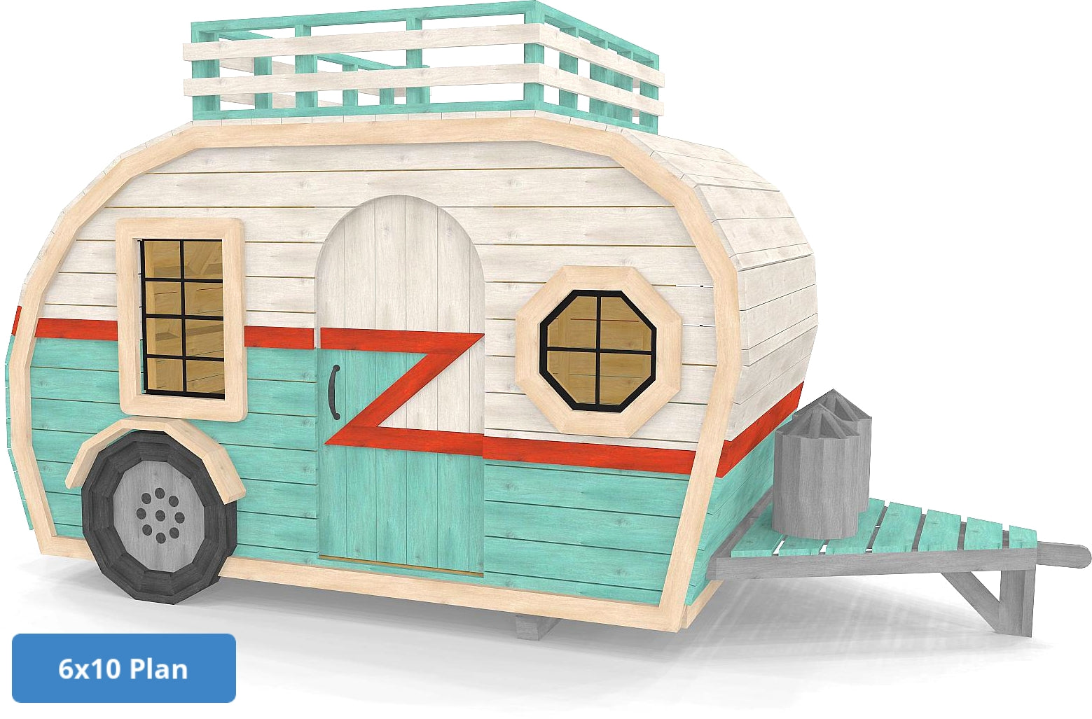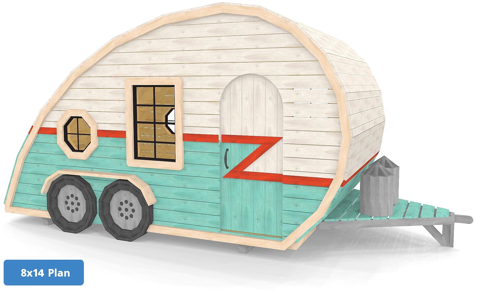 Fuel your child’s sense of adventure with a backyard retreat that captures the magic of the open road. Whether you envision a classic teardrop or a spacious travel trailer, the Happy Camper Playhouse Plan offers the perfect blueprint to build your child's dream backyard getaway. This versatile DIY project comes in four distinct options, allowing you to choose between two iconic styles and two footprints (6x10 or 8x14) to best fit your space and style.