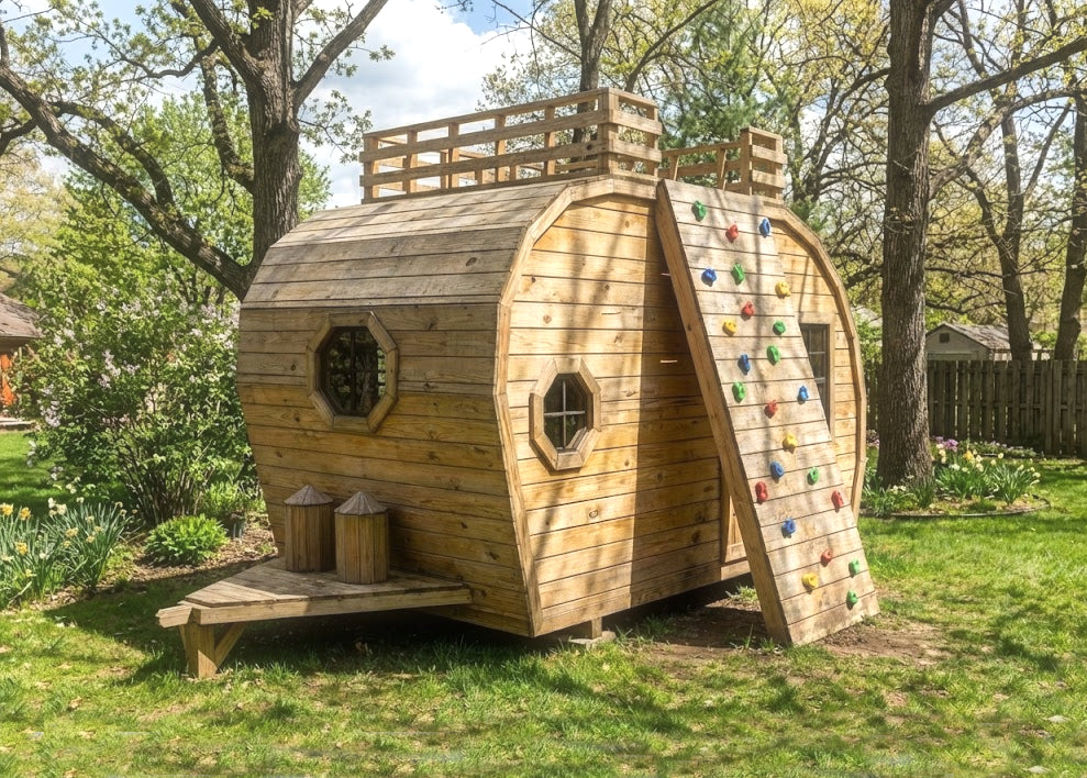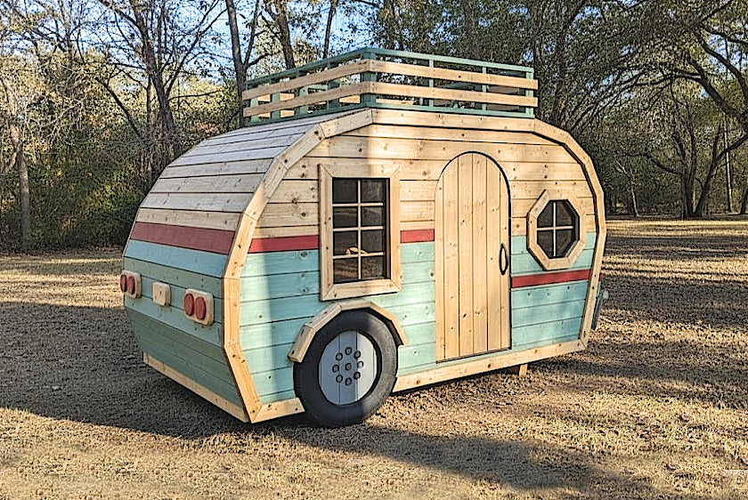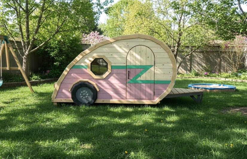 Fuel your child’s sense of adventure with a backyard retreat that captures the magic of the open road. Whether you envision a classic teardrop or a spacious travel trailer, the Happy Camper Playhouse Plan offers the perfect blueprint to build your child's dream backyard getaway. This versatile DIY project comes in four distinct options, allowing you to choose between two iconic styles and two footprints (6x10 or 8x14) to best fit your space and style.
