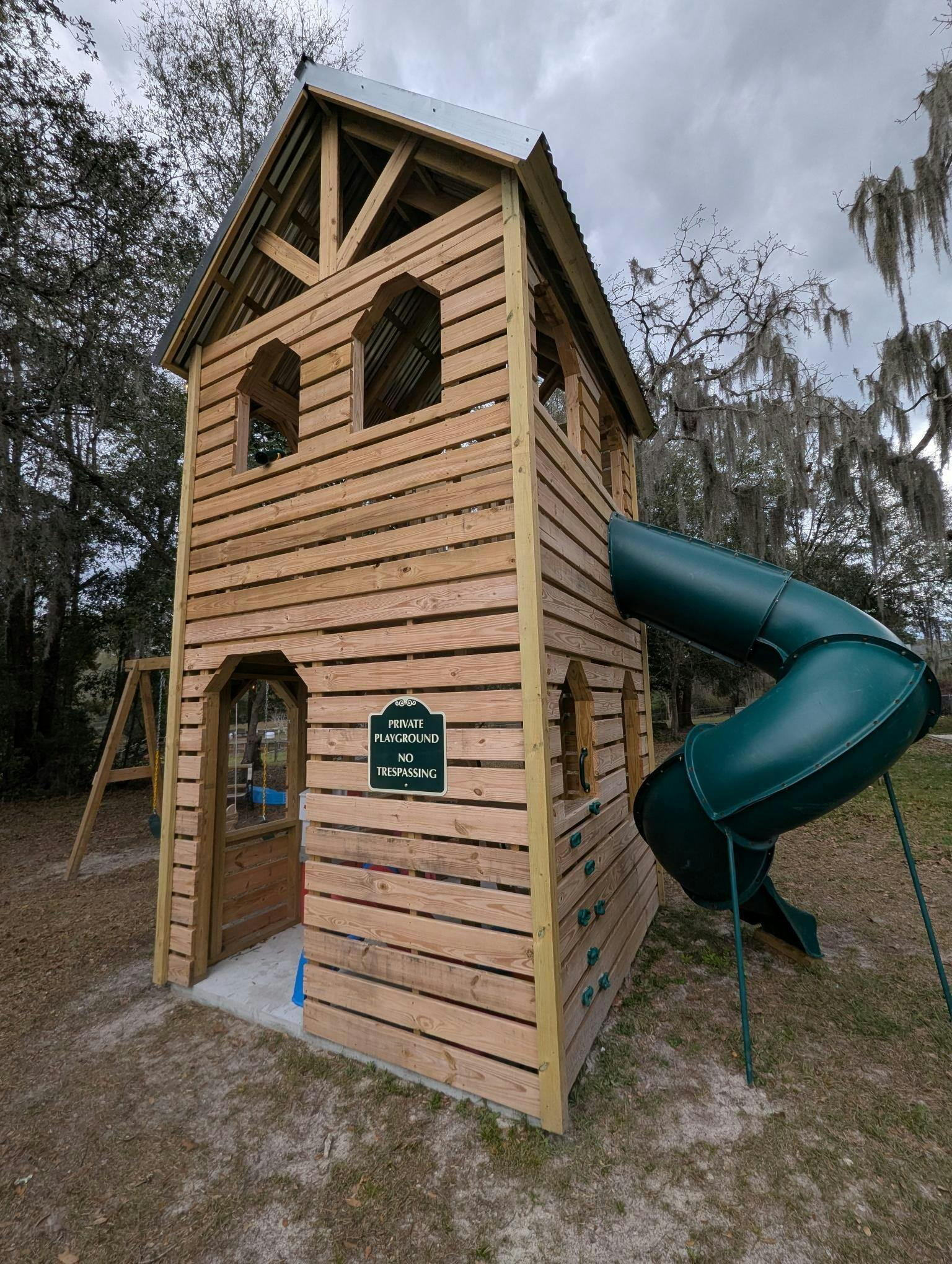 - One (Standard) or two (Deluxe) play towers with two levels each with a total of 96ft² (Standard) or 225ft² (Deluxe) in usable space